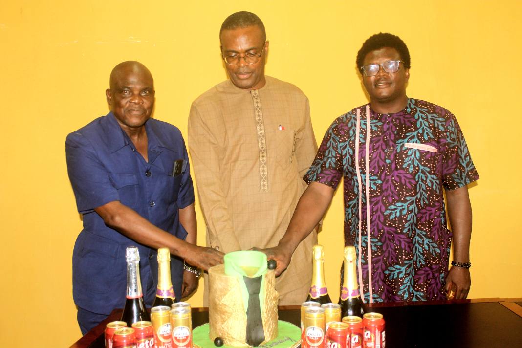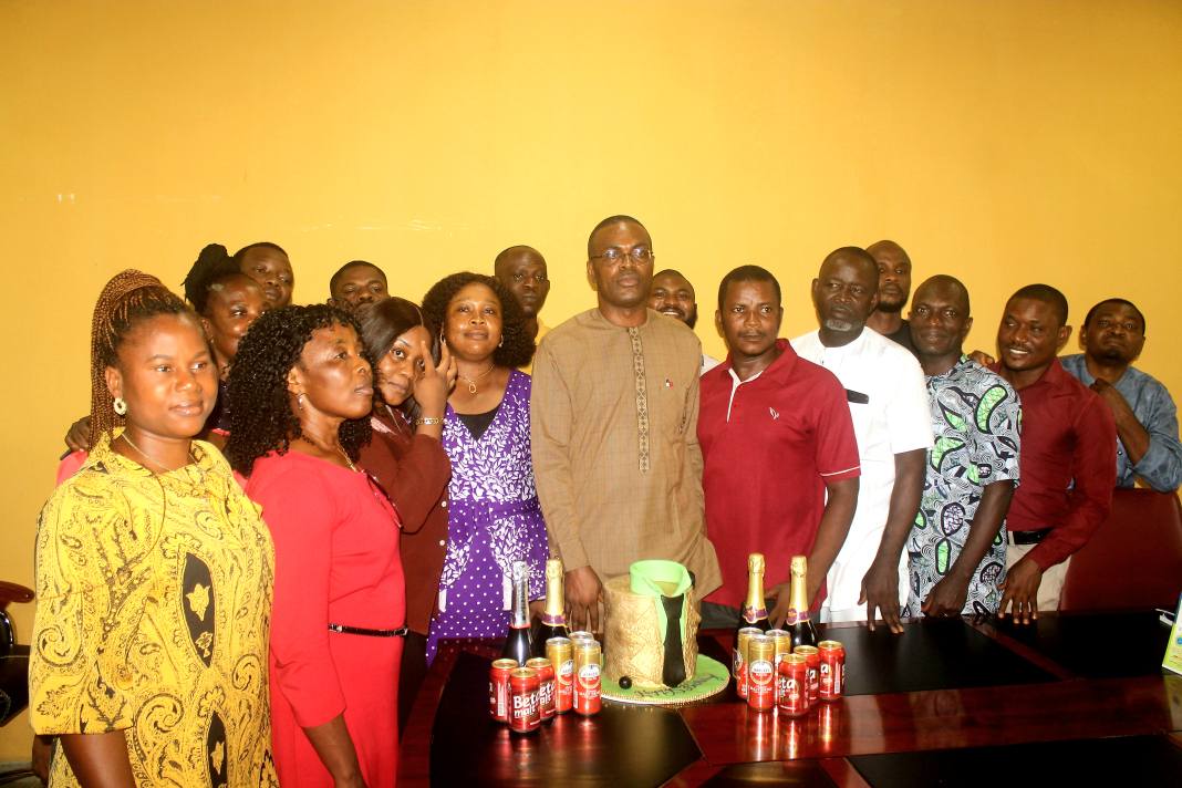 The unscripted celebration unfolded just after 9:00 a.m. at the administrative block, where the Principal Officers, Deans, Directors, Heads of Departments (HODs), and Union leaders gathered to honor the man at the helm. The heads of COEASU and SSUCON were also on hand, adding to the show of solidarity.